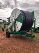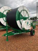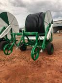 Carretel Enrolador Hidroturbo IP - 90/400 - E1r2, Giratório Montados Sobre Carreta de 1 Eixo, com 2 Rodas e Pneus 11L15 MHF Agrícola 12L", com Mangueira de Polietileno de Media Densidade Pn 8 de 90mm podendo ter variações de 400 á 550 Metros de Comprimento , Aspersor de 2.1/2" ou 3" com Reversão Lenta, Redutor com 2 Velocidades, Turbina Hidráulica Em Alumínio, com Painel de Comando Eletrônico Ip-1200, Bateria de 12 Volts, Acompanha Adutora e Conexões.