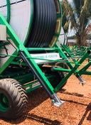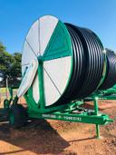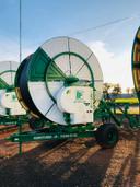 Carretel Enrolador Hidroturbo IP - 110/400 - E1r2, Giratório Montados Sobre Carreta de 1 Eixo, com 2 Rodas e Pneus 400/60-15,5 Mhf-Ex01, com Mangueira de Polietileno de Media Densidade Pn 8 de 110mm podendo ter variações de 400 á 430 Metros de Comprimento, Aspersor de 4" com Reversão Lenta, Redutor com 2 Velocidades, Turbina Hidráulica Em Alumínio, com Painel de Comando Eletrônico Ip-1000, Bateria de 12 Volts, Acompanha Adutora e Conexões. Opcional: Entrada Central, Giro e Ancoragem Hidráulicos.